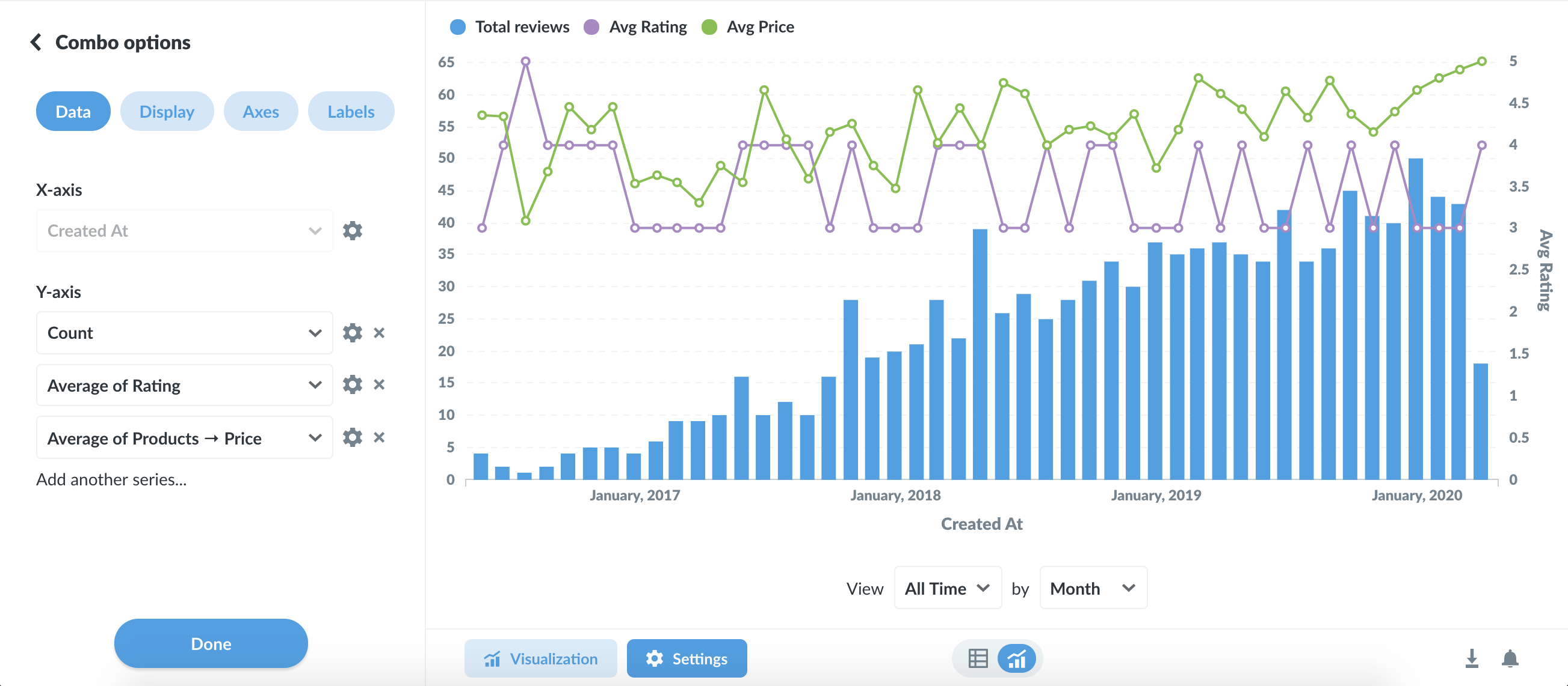 Veja um exemplo de gráfico que pode ser gerado pelo Metabase:
